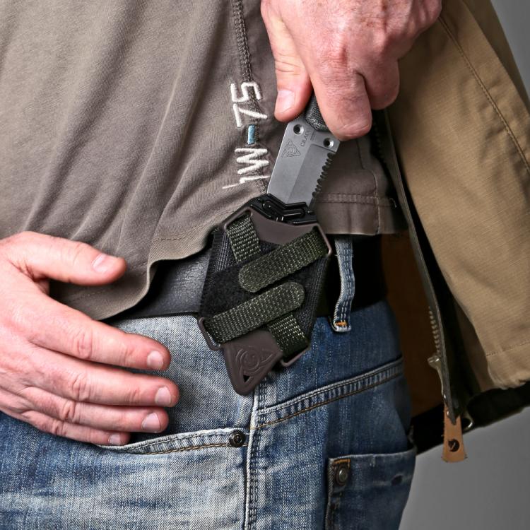 Les étuis ont la particularité d’être ambidextres. Que l’on soit droitier ou gaucher, le couteau s’insère de façon indifférente dans son fourreau. Chaque étui accepte sans distinction les lames à simple ou à double tranchant.