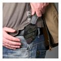 Le dispositif d’attache basé sur un système de sangles et de fixations scratch ajustable permet de positionner l’étui en position verticale ou horizontale, sur une ceinture, une bretelle, les attaches Molle d’un gilet tactique, une sangle, ainsi que tout autre support, et ce, en toute sécurité.