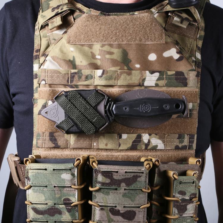 Le dispositif d’attache basé sur un système de sangles et de fixations scratch ajustable permet de positionner l’étui en position verticale ou horizontale, sur une ceinture, une bretelle, les attaches Molle d’un gilet tactique, une sangle, ainsi que tout autre support, et ce, en toute sécurité.