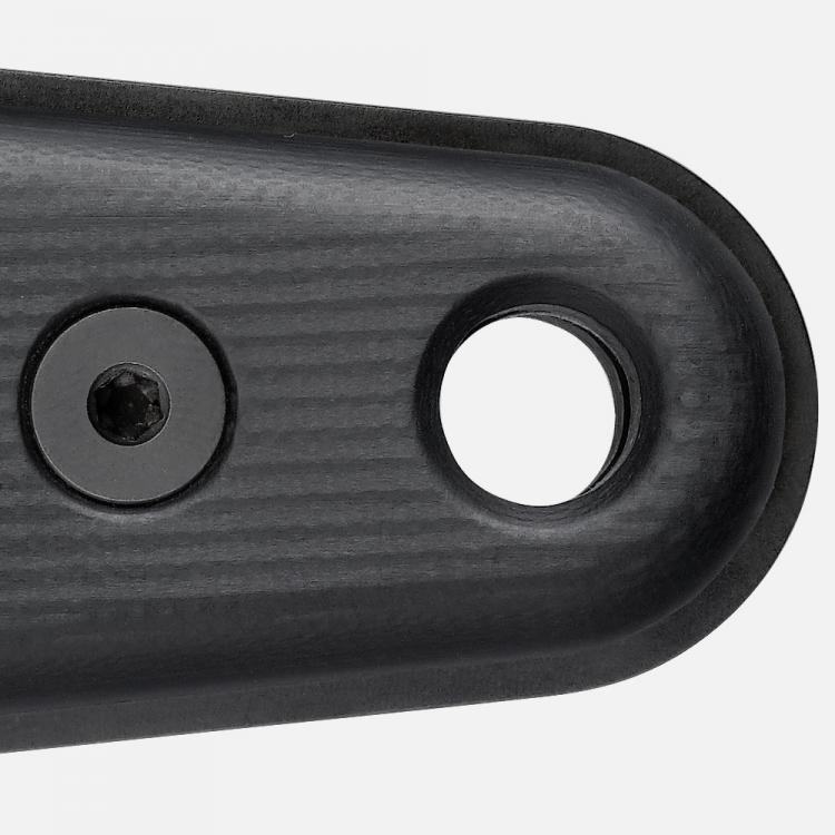 Fait de Micarta, matière composite constituée d’une ossature de fibre de lin, de coton ou de verre (en fonction des modèles) intégrée dans une base époxy sous haute température et haute pression. Matière stable dans le temps, résistante aux variations de température, d’humidité. Très agréable au touché.
