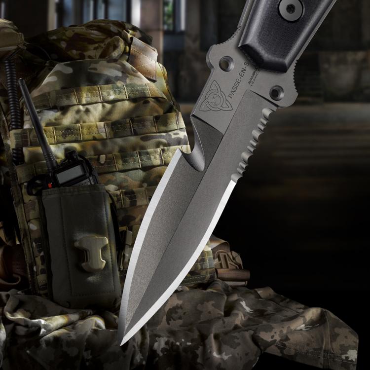 Son nom vient de la fameuse Passe-en-s de Mayotte, site de plongée sous-marine remarquable. Fait pour la plongée et la chasse sous-marine, la lame à double tranchant est dotée d'une goutte d'eau pour couper filets, cordelettes, lignes...